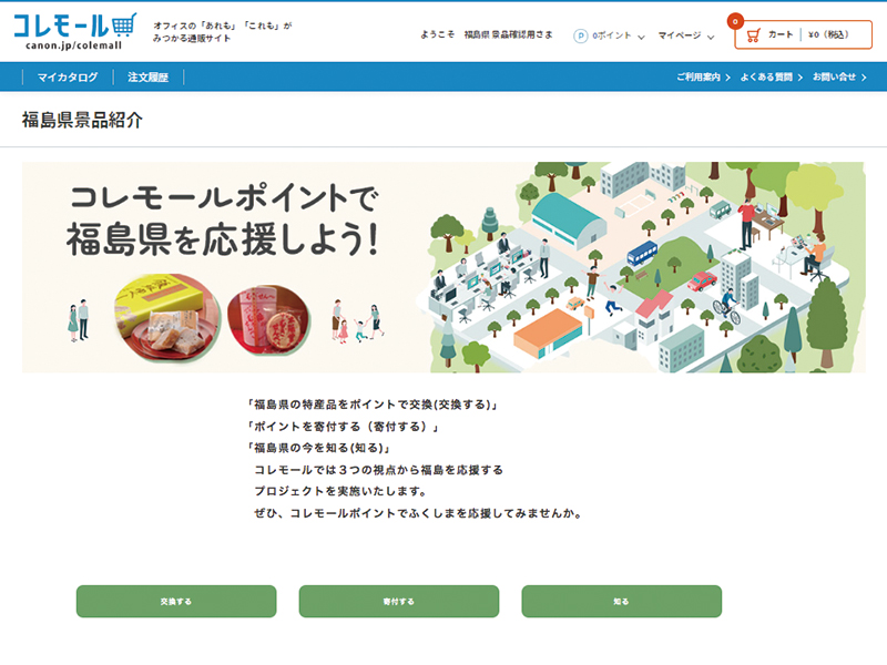 - 法人向け通販サイト「コレモール」のポイント交換用景品に県産品や福島県への寄附を採用